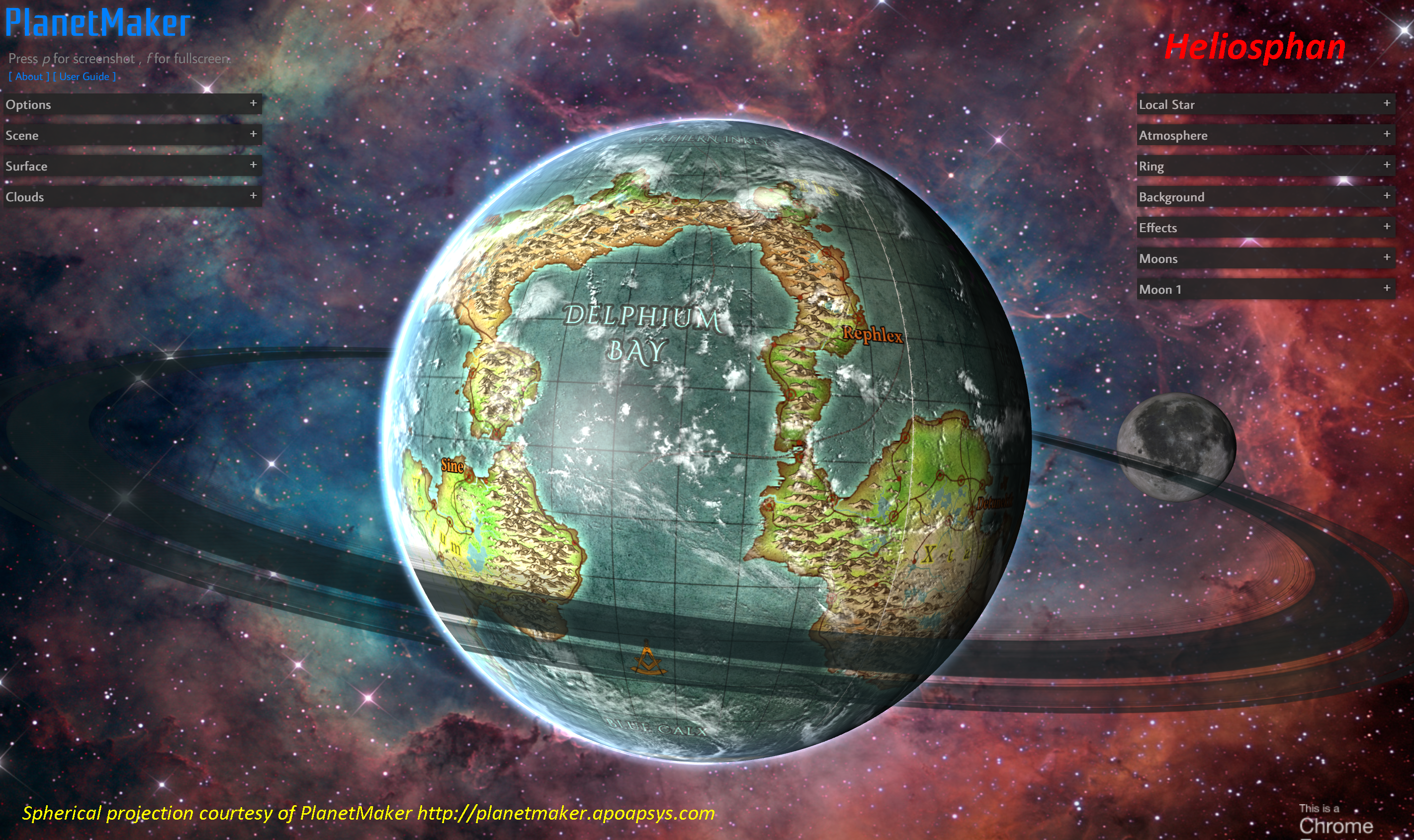 Spherical nebula projection version courtesy of PlanetMaker http://planetmaker.apoapsys.com