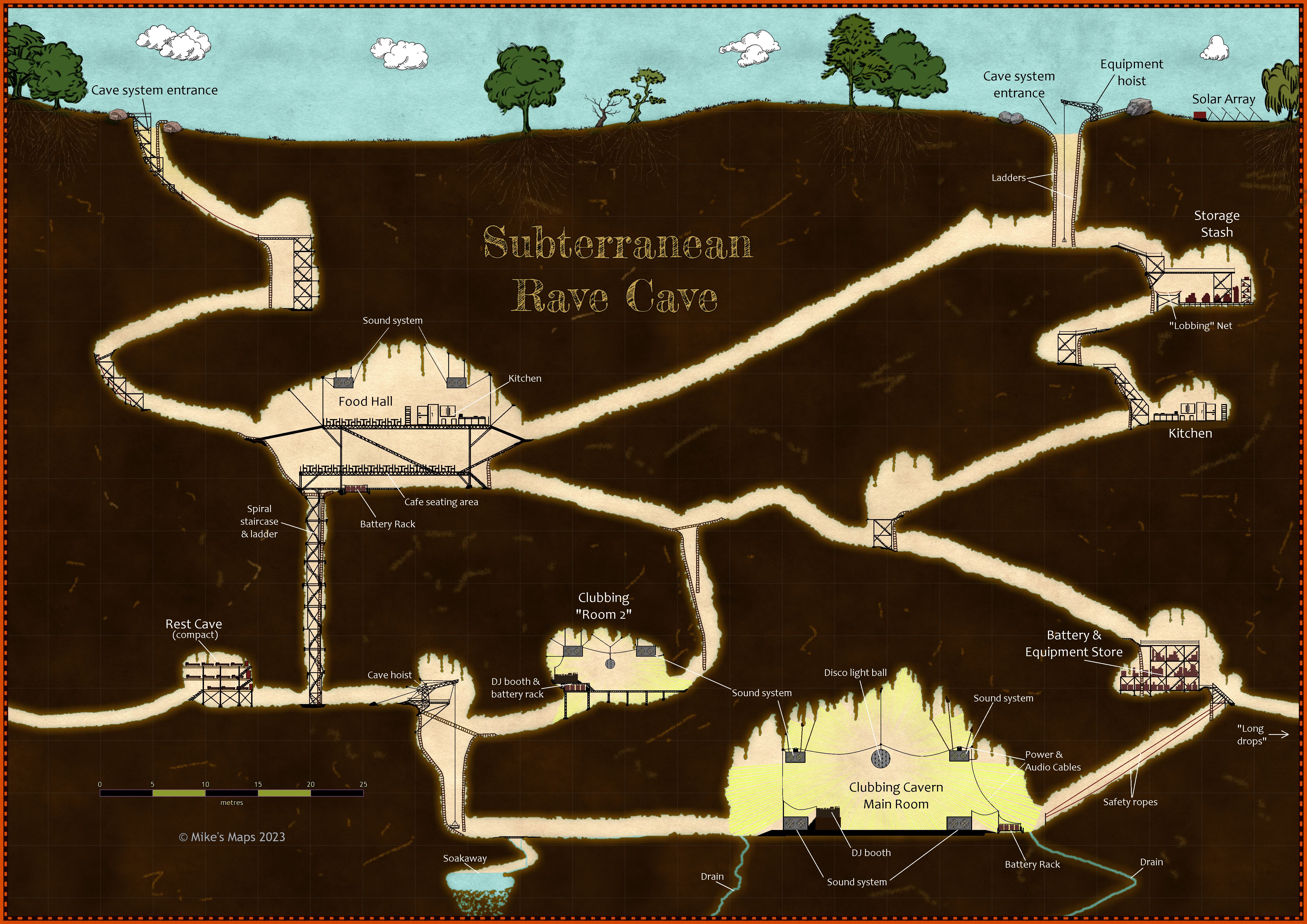 Own project - Underground clubbing! (cross-section map) 4960 x 3508 pixels.