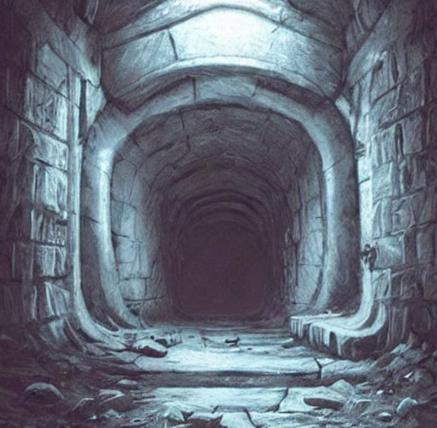 You step into a stone tunnel. Your footsteps echo but you hear nothing, and nobody, else. It's long enough to extend into total darkness and the air smells of damp stone. You could almost feel safe here. Almost.